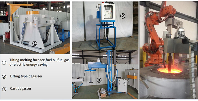 You can find all equipment for the complete casting process of aluminum casting here. HANZHU Machinery provides detailed plan quotation according to client’ production requirements. The equipment includes resistance melting furnace, degasser with Nitrogen and Argon, Pouring aluminum tools, Ladle preheat device, Casting fixture, Consumption material for low pressure and gravity casting, Lifting tube preheat furnace and so on.